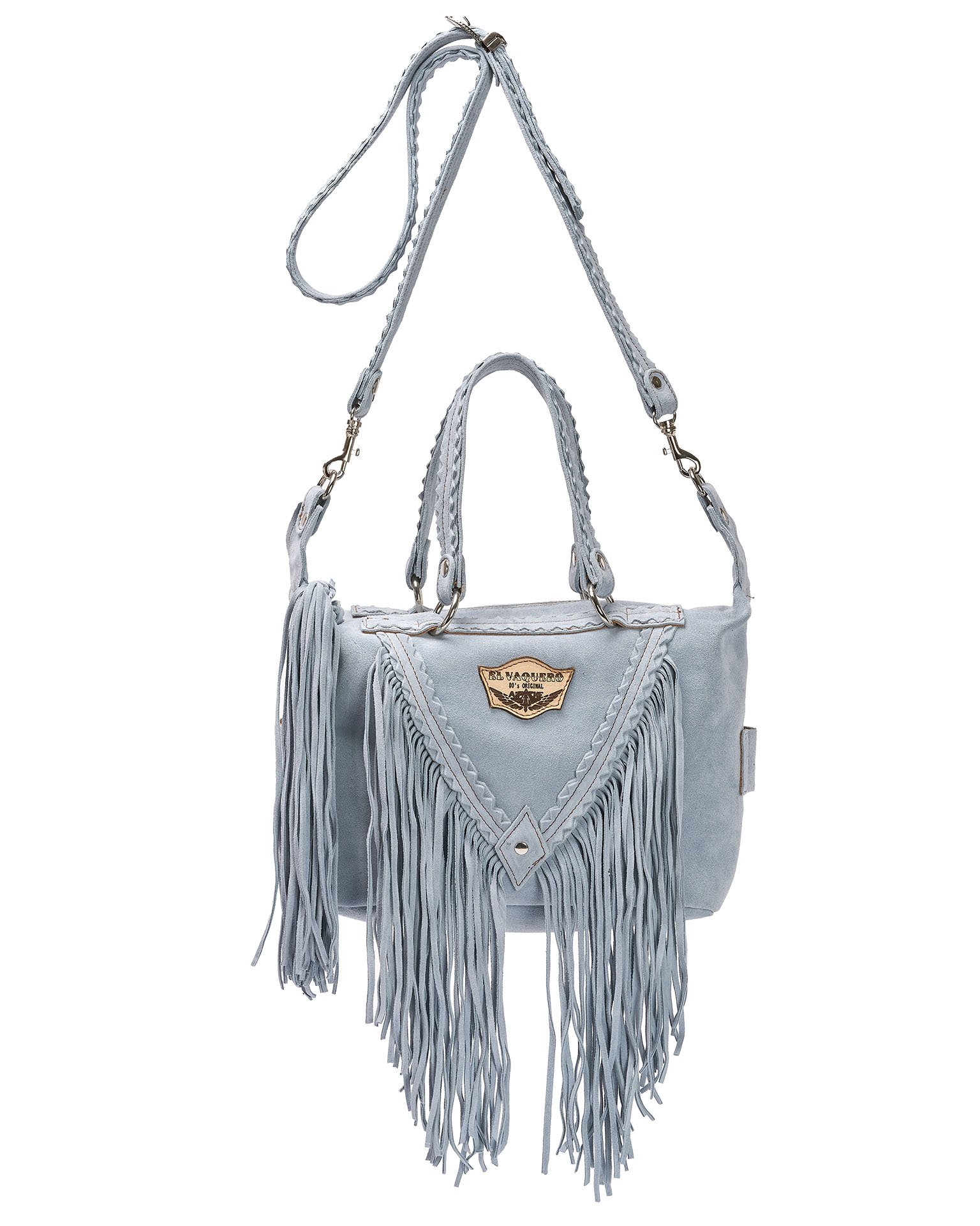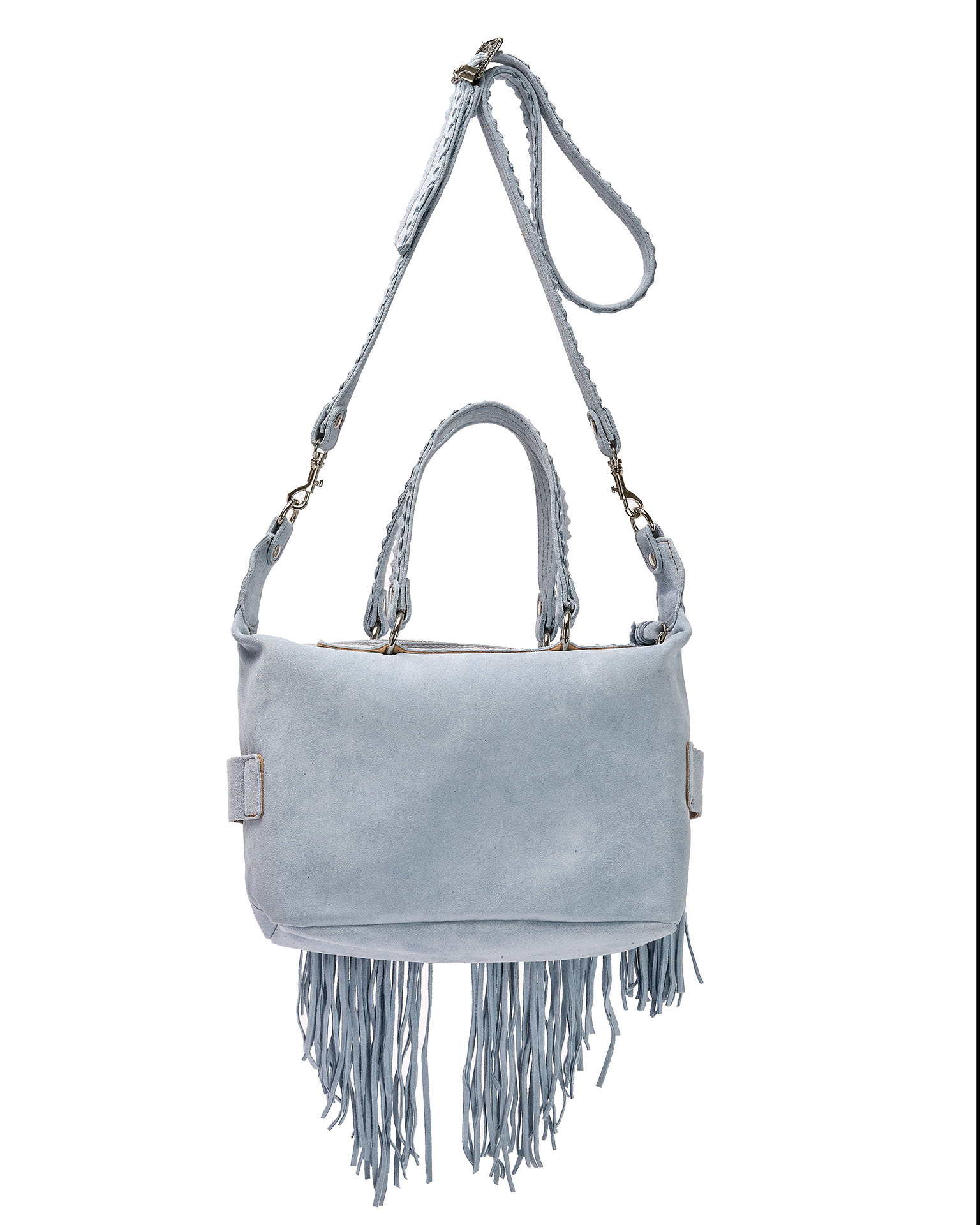 Byron is our new wonderful bag, small yet roomy, it is the perfect daytime and evening accessory. Embellished with long fringes, beautiful leather detailing and hardware embellishments, it is then scratched and washed with our feature ageing technique called “Silverstone” which creates amazing color fluctuations and shades on the suede leather, defining the unique character of our products.